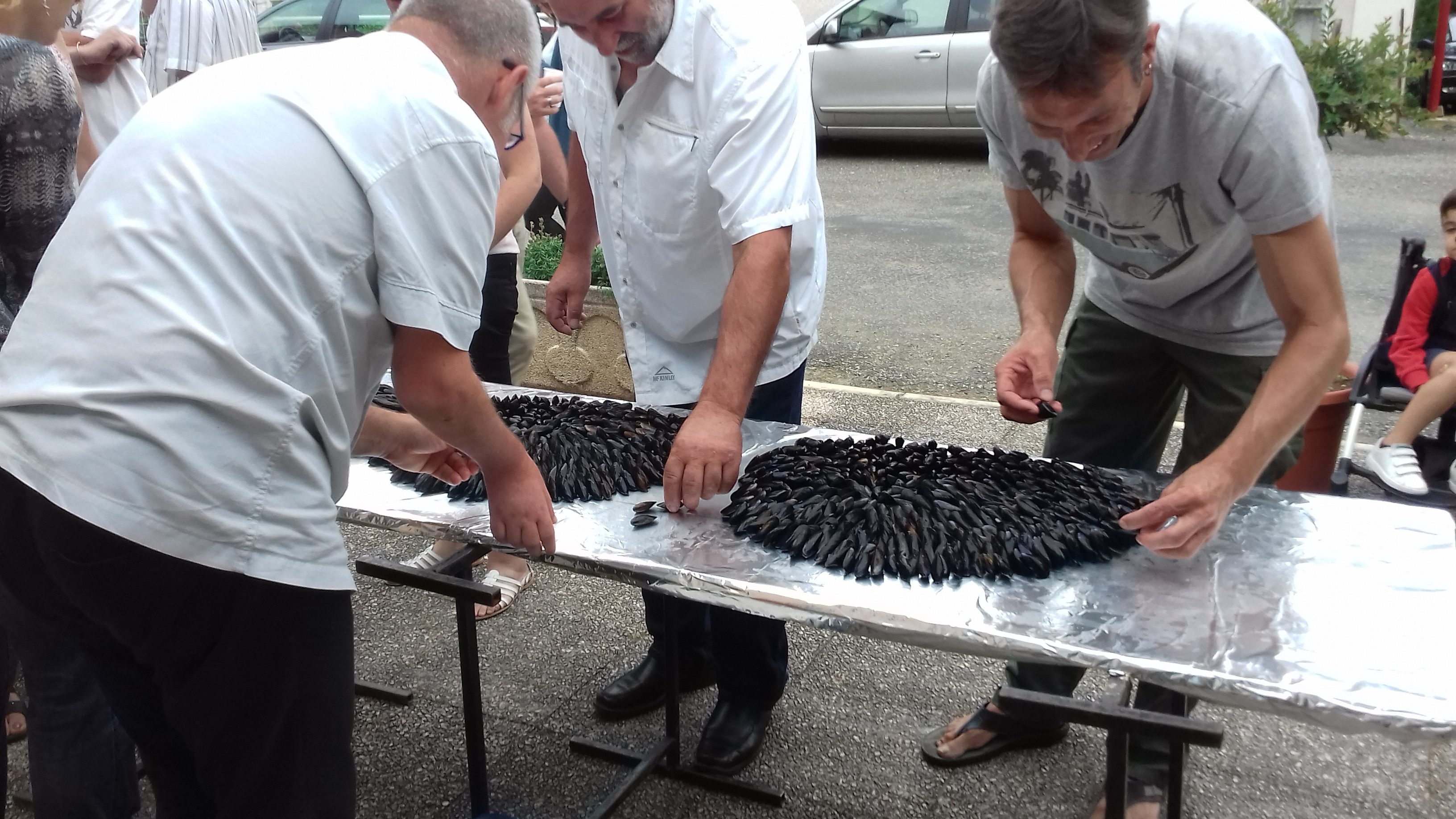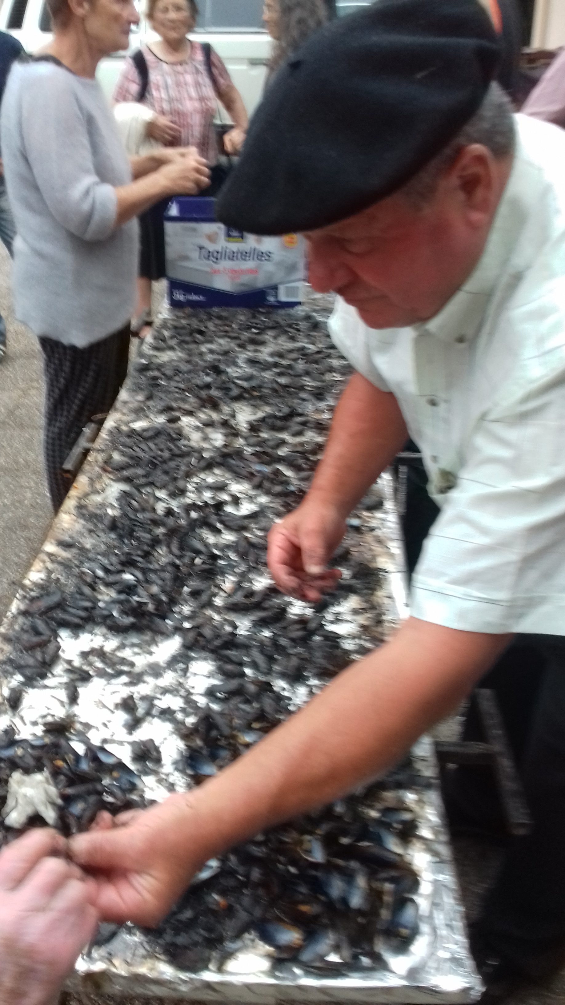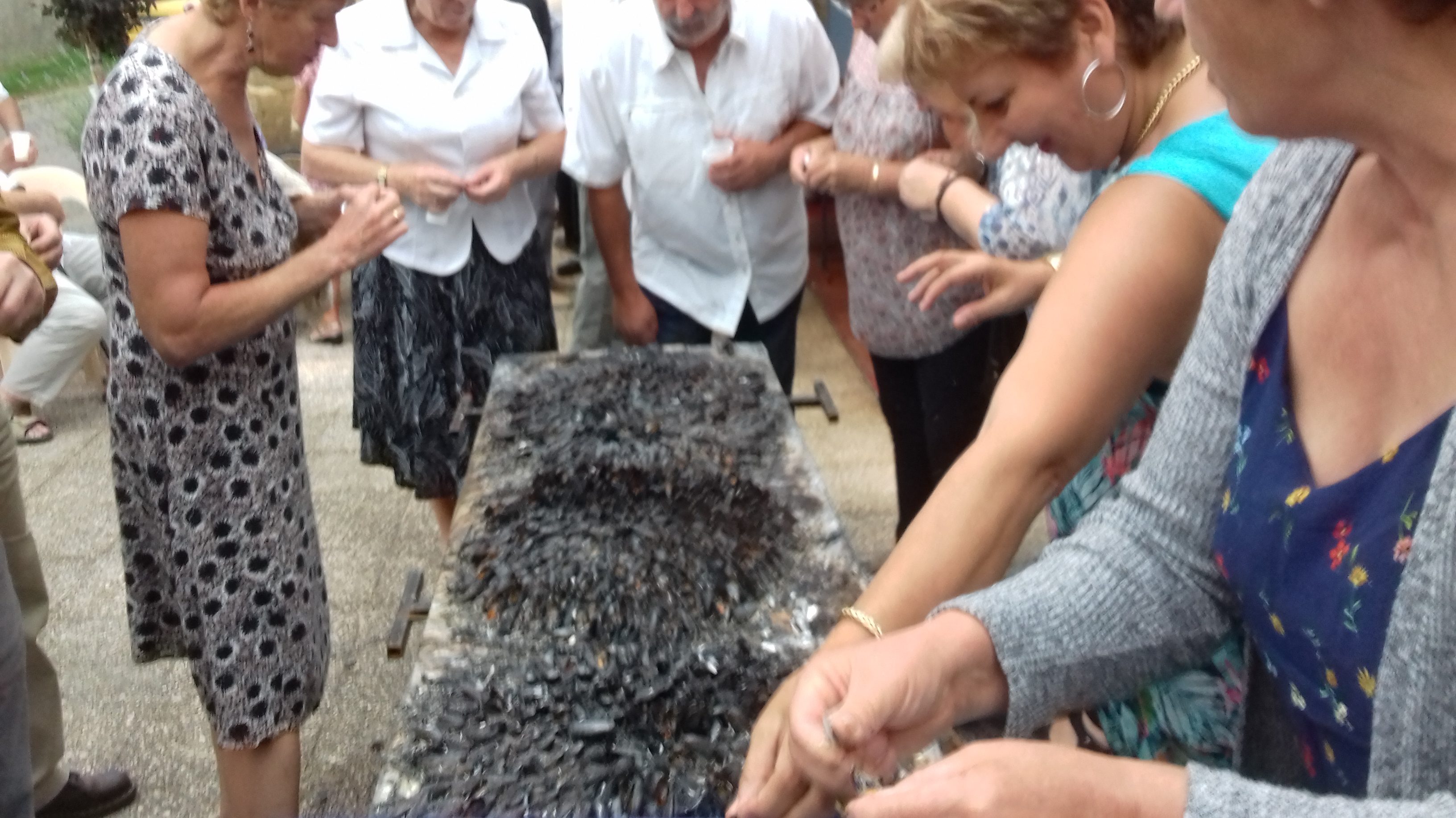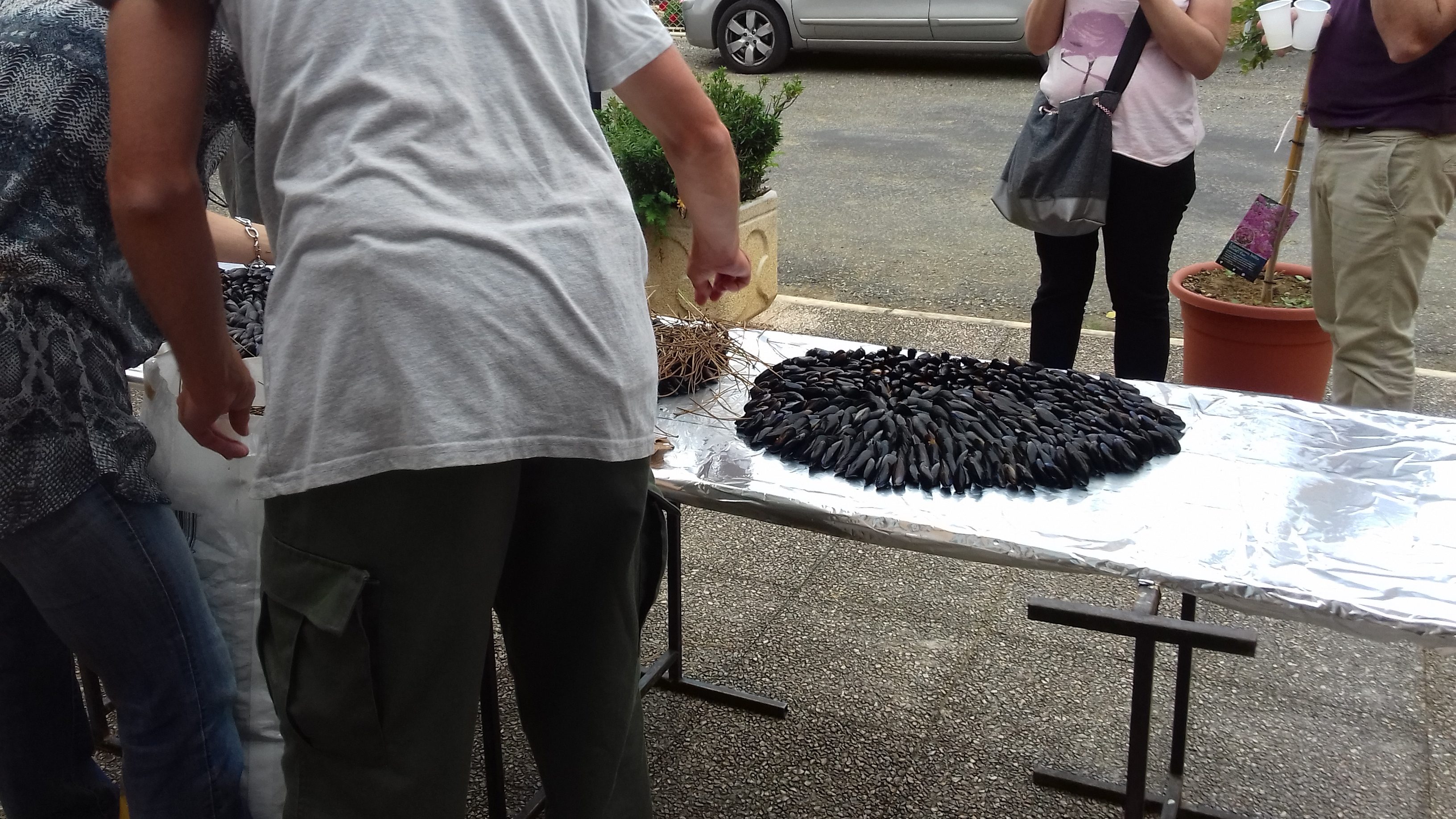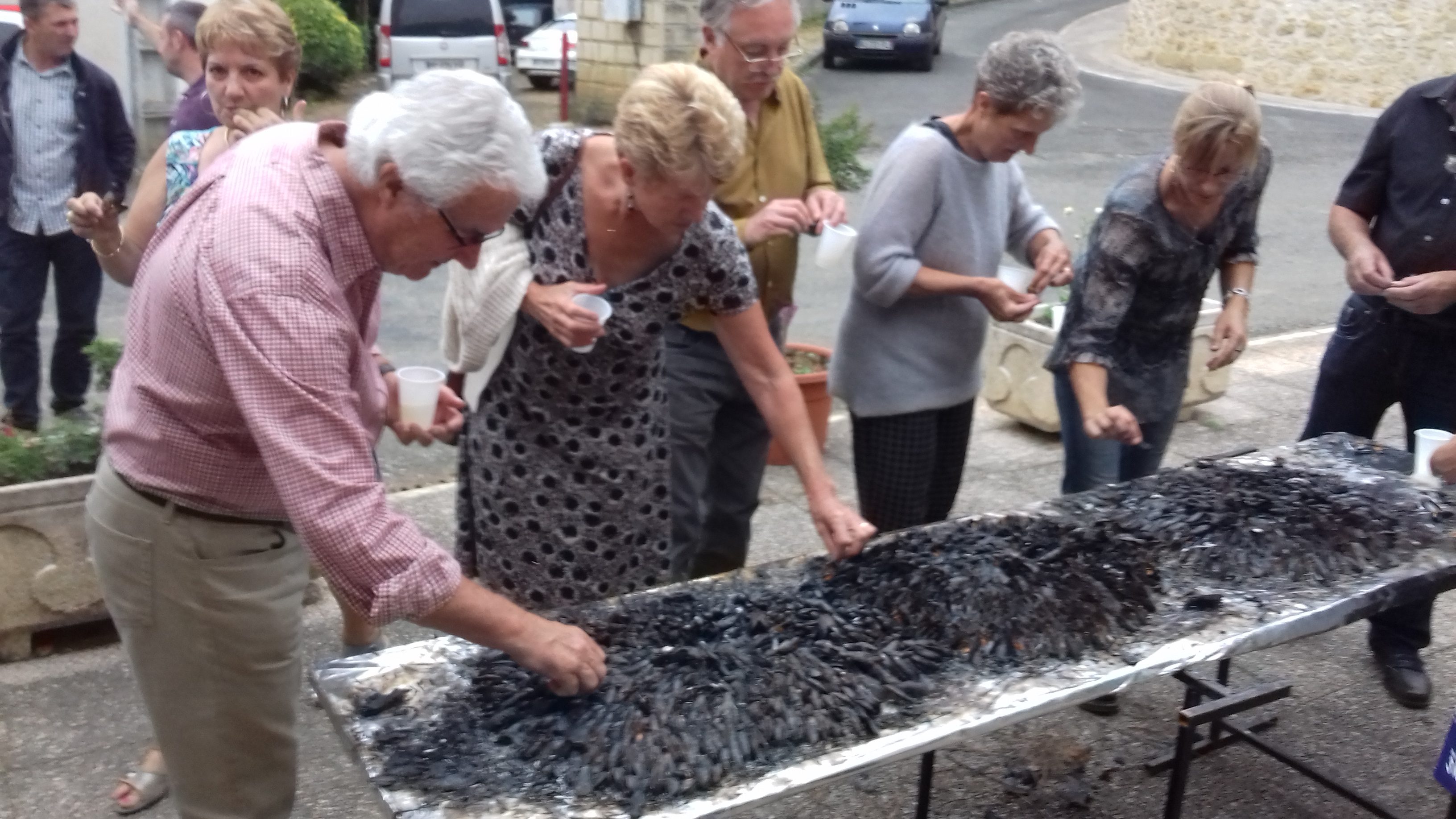 Pour changer des traditionnelles chips et cacahuètes, les Gensacais ont pu goûter à une éclade de moules aux aiguilles de pin, une spécialité de Charente-Maritime.